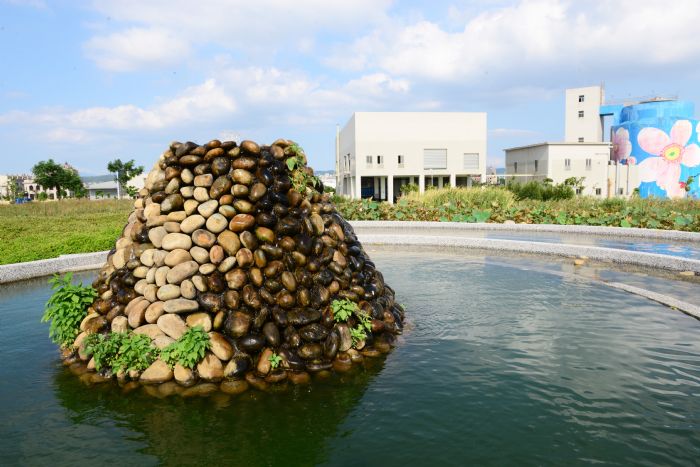 來到蘆竹區復華路與南崁路之間,桃園北區水資源回收中心就像一座大庭園;它於今年初通過認證,順利成為桃園市第11處「環境教育設施場所」。北區水資源回收中心以「山、林、水、瀑」為四大景觀意象,並與桃園市最大的埤塘——瓦窯埤下池,結合為一片廣大的環境教育生態場域。