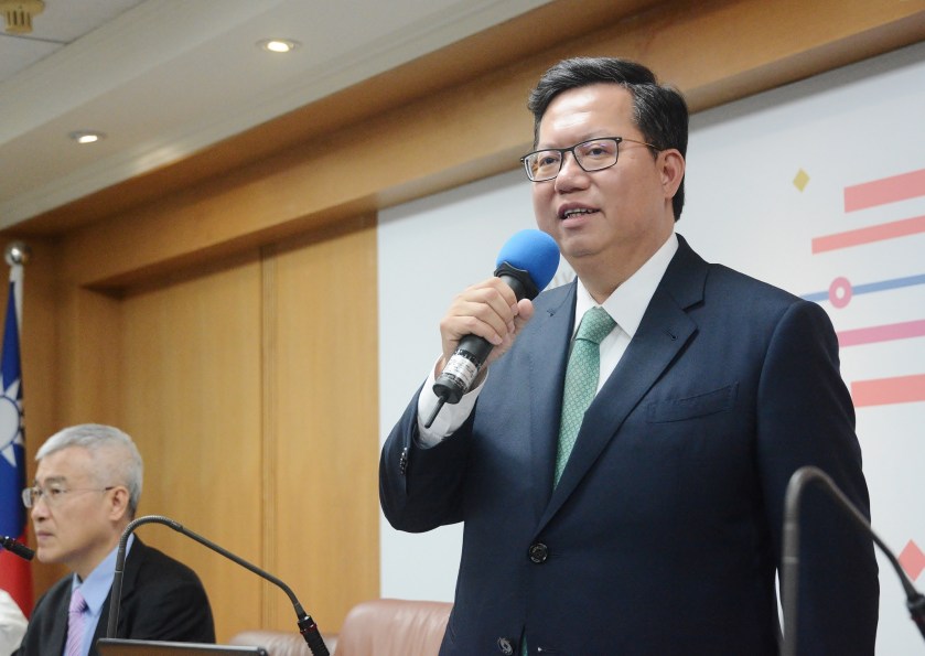 桃園市長鄭文燦26日下午主持新市府團隊上任後的首次市政會議,他期勉團隊在工作崗位上,務必清廉、認真、樸實、有創意,完成市府每一項工作。鄭市長表示,新的政治時代必須接地氣,從市民角度思考問題、提高行政效率,過去4年同仁交出亮眼成績,未來仍有許多挑戰,期勉市府同仁全力以赴。