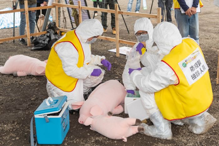 鄭市長說,防疫如同作戰,必須料敵從寬、禦敵從嚴,並建立標準作業程序,讓大家瞭解一旦疫情發生應如何應變。今日演習模擬養豬戶到大陸旅遊,攜帶非洲豬瘟病毒回台造成養豬場豬隻發病時,依行政院農委會所建立包括消毒、掩埋、防疫通報等相關作業準則進行處理,讓養豬產業瞭解處理方式。
