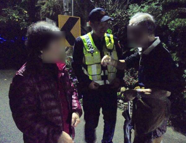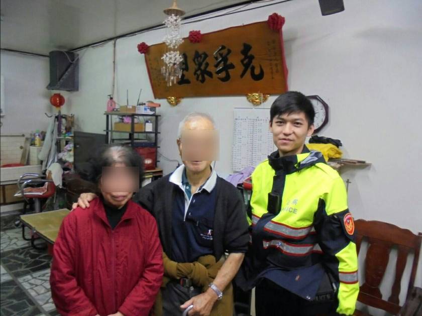 楊梅分局新屋分駐所警員萬竑德、楊凱翔巡邏警網恰巧遇見老太太,了解事情原委後立即載老太太沿路往富岡方向尋找老先生,終於在中興路與社福路口發現周老先生,員警立即下車請周老先生上車,員警要載周老夫妻一起回家,周老先生顧及面子不願意上車,並說他要走到富岡接大坡再回永安,估計要再走10幾公里。