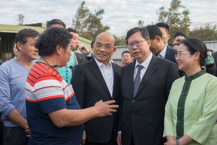 今日包括立法委員陳賴素美、鄭運鵬、行政院秘書長李孟諺、發言人Kolas Yotaka、農委會主任委員陳吉仲、環保署長張子敬、動植物防疫檢疫局新竹分局長柯榮輝、市府農業局長郭承泉、環保局長沈志修、新聞處長詹賀舜等一同至桃園視察。