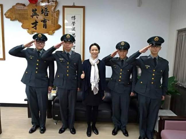 陸軍專科學校表示,,像是桃園龍潭高中日前(14日)臉書刊出,陸軍專科學校專科一年級四位同學返回母校,感謝鍾碧霞校長及學校教官昔日諄諄教誨及指導,鍾校長看到孩子們經過軍事訓練的洗禮,不但變得成熟、懂事有禮貌,身體及儀態也變得更健康,經過半年的軍校教育後,如今再次穿著軍服返回母校感謝師恩,文質彬彬有禮的形象,讓母校引以為傲。
