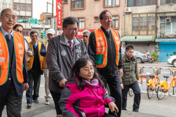 桃園市長鄭文燦26日上午前往桃園區,在衛生局長王文彥、肝病防治學術基金會執行長楊培銘陪同,出席「桃園市迎春送暖有愛無礙免費肝炎肝癌篩檢活動」,鄭市長表示,肝病是國病,市府結合肝病防治學術基金會、國際扶輪台北市華中扶輪社推動肝病篩檢、常規血液檢查及腹部超音波;同時也結合身障團體,提供120位免費檢查以及B、C肝轉介治療。今日在桃園區辦理後,預計3月也將在八德繼續舉辦,期盼透過推廣,能夠讓市民更重視,也提供身障朋友多方面照顧。