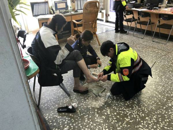 員警見老婦腳趾受傷,全身顫抖,行動不便,紛紛主動倒熱茶及清理婦人受傷及包紥傷口,期間員警不斷的安撫老婦情緒並詢問其年籍,但該婦説話口語不清,經過七拼八湊,仍無法得知其意,經員警以人臉辨識系統不斷拍照查詢,終於查出老婦名叫王〇敏住在楊梅區青山里,打電話連絡家屬卻一直連絡不上,員警隨即以警車送老婦返家。