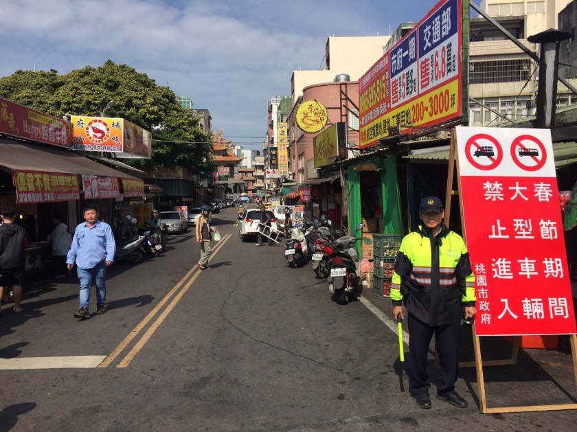 桃園市大園區仁壽宮每到過年都有大量參拜上香走春人潮,為避免附近道路壅塞,桃園市大園警分局日前與桃園市政府交通局、桃園汽車客運股份有限公司、大園區公所、大園里辦公處及仁壽宮等單位辦理現地會勘,並自2月4日8時起至2月10日16時止連續7天,針對仁壽宮周邊道路口設置禁行大客貨車告示牌及交通疏導管制措施。