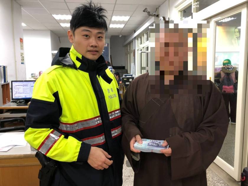 失主是一名僧人,該筆款項是信徒所捐贈的,原本今天提領是為了要進行某慈善工作之用,沒想到因為一時疏忽,竟遺忘在提款機旁。在遍尋不獲,快要失去希望時,員警即時的一通電話,真是讓這名僧人感動萬千。