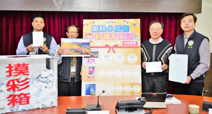 把惱人的違規小廣告單撕下,就送您超商禮券!桃園市環保局舉辦「撕小廣告換超商禮券」的活動已邁入第五年,迴響熱烈,而兌換金也能納入市民卡的加值範圍。環保局長呂理德2月13日公開抽獎,送出3部市價約3萬元的大型液晶電視等好禮,鼓勵大家繼續拒絕違規的小廣告,讓桃園的市容更美好。