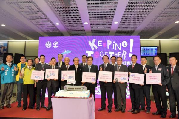 桃園市副市長游建華和桃捷董事長劉坤億、總經理蒲鶴章及交通部鐵道局局長胡湘麟等貴賓,切蛋糕慶祝桃捷兩歲生日,並共同完成美好實現的四大成就拼圖,宣示桃捷將蛻變成「桃捷3.0」,成就更多美好生活。在通車兩週年這特別的日子,桃捷董事長劉坤億特別感謝桃園市長鄭文燦一路走來,對於桃捷公司所有運輸政策的支持和協助,尤其在兩週年前夕,核定基本薪調薪等4大利多,讓同仁備感溫馨。在全體同仁努力下,桃園機場捷運已經成為桃園國際機場聯外最重要交通工具,也是串聯北北桃1小時生活圈重要的通勤路線,在推出包括120天五折定期票、以及全線區間優惠10元等多種優惠票價方案後,運量穩定成長。劉董事長表示,桃園機場捷運兩年來不斷精進、優化服務品質,種種數據都顯示機場捷運在國內公共運輸扮演重要角色。未來,桃捷公司努力提升服務品質,並且和桃園市政府合作啟動沿線旅遊,相信能再創佳績。
