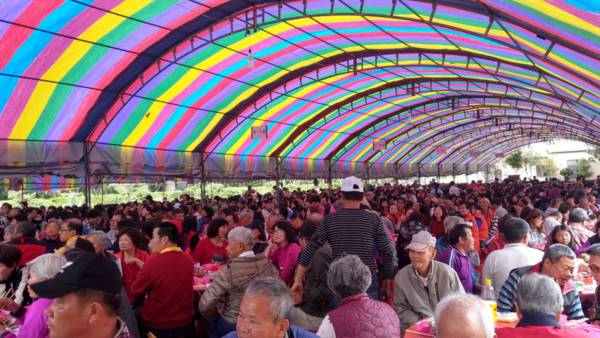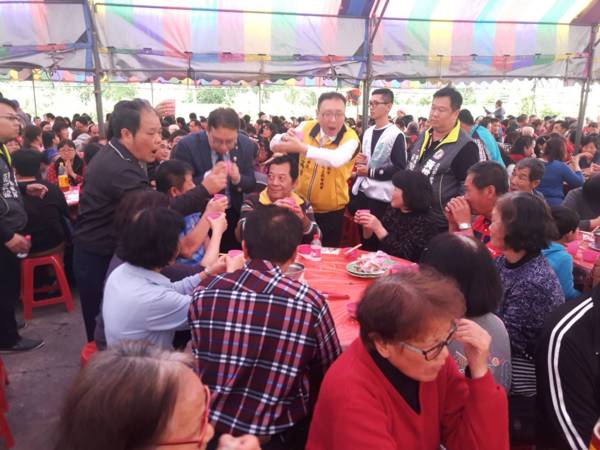 由楊梅區黄姓宗親會會長黃貴雄舉辦的感恩聯誼會,17日在楊梅江夏堂古厝登場,力挺黃適卓、黃世杰分別角逐桃園市長、立委;桃園市長鄭文燦、前內政部長黄主文、桃園農田水利會會長黃金春、桃園農田水利會總幹事黃金德、民進黨主委張火爐、顧問黃阿日等人與會,現場席開近二百桌,場面十分熱絡。