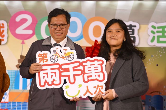 桃園市長鄭文燦(19)日上午前往中壢銀河廣場,出席「歡慶桃園YouBike使用人次突破2000萬活動」,鄭市長表示,桃園自105年2月起,推動公共自行車政策,今日正式突破2,000萬使用人次,同時,市府也達成多項里程碑,包括:3年內設置284個租賃站、提供8,700輛公共自行車;去(107)年10月起,加入公共自行車傷害險機制,民眾可透過YouBike官網、Kiosk租賃站投保,提高騎士安全保障;為提高車輛周轉率,延續使用前30分鐘免費之優惠措施等。為鼓勵更多市民使用公共自行車,今(108)年年底預計增加租賃站至320站,提供市民更安全、方便的綠色交通工具,打造桃園綠色交通網絡。