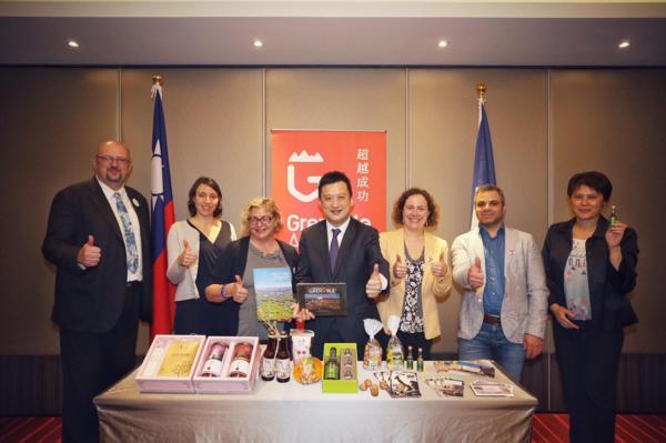 格勒諾布爾以核桃和紅酒聞名,顏處長送上桃園復興區三光五月桃精釀而成的水蜜桃啤酒「桃酒喝」和美顏棗禮盒、紅棗精萃面膜禮盒,他說,桃園的食品加工廠把「紅棗」跟「核桃」做成點心,就像把兩個城市的友誼「緊密的結合在一起」,也藉此機會向國際推廣桃園獨有的紅棗觀光工廠。