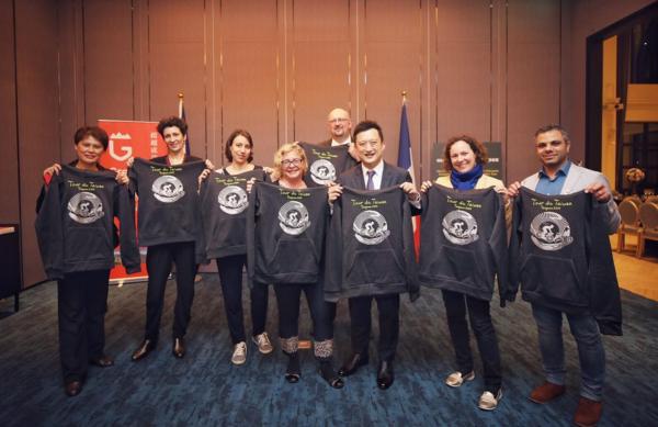 顏處長說,法國6月將舉辦世界盃女子足球賽,他知道足球運動在法國風氣盛,也預祝法國拿下冠軍。而在格勒諾布爾因為美商聚集的關係,也有不少棒、壘球隊,在桃園棒、壘球同樣是許多市民熱愛的運動之一,希望未來有機會組隊到格勒諾布爾交流。在教育方面,桃園大園國際高中和法國阿古斯高中去年締結姊妹校,相信雙方未來也會有很多的交換學生計畫。