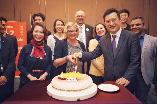 桃園市與法國格勒諾布爾阿爾卑斯大都會區(簡稱格勒諾布爾)29日締結姊妹市將滿一周年,格勒諾布爾代表團28日訪問桃園。晚宴上,雙方代表也共同切蛋糕慶祝周年紀念。桃園市長鄭文燦表示,未來在智慧城市、生技醫療、新創產業及觀光旅遊等方面有更多合作機會。