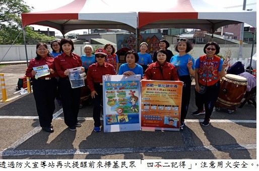 於公墓入口處旁,也設置滅火神射手與急救球神醫等防火宣導站,並且發放水帶及宣導單,希望透過熱鬧有趣活動方式喚起民眾防火意識觀念,消弭災害於未然,最後再次提醒掃墓民眾「四不二記得」,注意用火安全。
