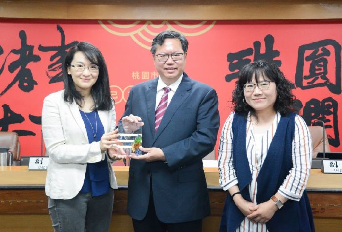桃園市長鄭文燦10日上午主持市政會議,接受市府青年事務局、資訊科技局、水務局與工務局呈獻榮獲「2019智慧城市獎項」。鄭市長表示,「2019智慧城市論壇暨展覽」於今(108)年3月26日至29日在台北南港展覽館舉行,是亞洲最大的智慧城市專業展會,內容涵蓋智慧醫療、智慧建築、智慧教育、智慧能源、智慧交通、智慧安防等,其中桃園市由青年局與資科局共同榮獲「2019友善新創城市獎」直轄市第一名、水務局以智慧地下水管理系統獲「2019智慧城市創新應用獎」及工務局以智慧路燈暨物聯網應用平台獲「2019智慧城市創新應用獎」,計3個獎項,展現出桃園智慧城市發展在各領域的廣泛應用。