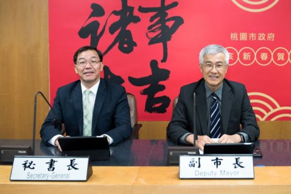 鄭文燦市長(17)日宣布,桃園市副市長由桃園市政府秘書長李憲明陞任,桃園市政府秘書長職缺則由副秘書長黃治峯陞任,並同時兼代理工務局長。