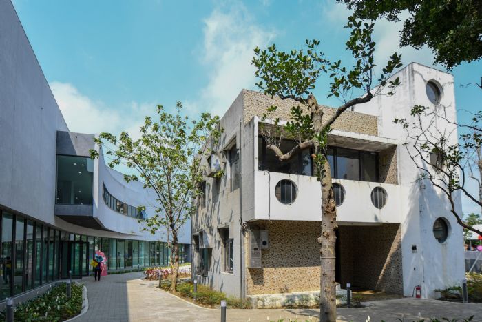 桃園市政府秘書長兼代工務局長黃治峯表示,桃園區南門市民活動中心位於桃園區南門公園內,為地上2層建物,總樓地板面積約363坪,工程總經費約4,000萬元,1樓規劃為文康室、舞蹈室里、多功能教室、無障礙廁所及哺乳室;2樓設置可容納約200人的大禮堂、4間會議室等,並設有大陽台及水平長窗框,增加採光效果;1、2樓間規劃木製階梯,可彈性運用於休憩或舉辦講座等;屋頂層設置大面積綠化植栽及木平台;建築則採用灰色系抿石子外牆、大片落地窗等設計,巧妙將建築融入公園綠意中,打造南門活動中心成為會呼吸的環保綠建築,提供桃園區南門里、南華里、西門里、西湖里四里居民優質的集會及活動空間。