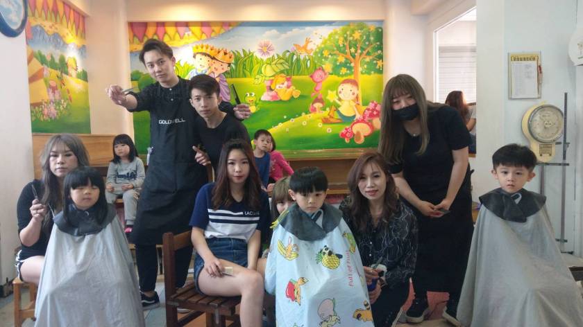 楊梅時尚CHlC髮藝團隊23日上午九時,由店長古筱藢率領下,一行8人抵達楊梅狄斯耐幼兒園,為幼兒園小朋友免費修剪頭髮,整個活動充滿愛心與溫馨,義剪人員細心動作與溫柔對話,令小朋友豪無畏懼感,安心地剪完頭髮,小朋友也很有禮貌、高興地向義工說声謝謝,義工報以微笑作答。