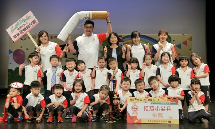 今年榮獲拒菸小尖兵金獎為格林國際幼兒園隊,銀獎為內壢非營利幼兒園隊、愛尼歐幼兒園可愛的鬱金香隊,銅獎為蔚霖幼兒園戒菸特攻隊、義盛國小附設幼兒園拒菸小勇士隊、逸光幼兒園拒菸小兵團隊,透過表演方式融入菸害防制議題,發揮創意與才藝,提倡從小拒絕菸品,宣導二手菸及三手菸危害家人健康等觀念。