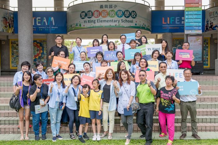 桃園市長鄭文燦26日上午前往平鎮區義興國小,視察桃園市義興國小雙語創新教學時表示,桃園自106學年度起,推動「雙語創新教學計畫試辦學校」計畫,選擇義興、快樂、內壢、青埔國小和青埔國中等5所學校,投入約1,978萬元外師經費,擴大外師聘任名額,補助國中小雙語學校約309萬元,提升校內軟硬體設施,進行雙語試辦教學。其中義興、快樂國小1至2年級及內壢、青埔國小1年級都至少有三分之一課程進行雙語教學,