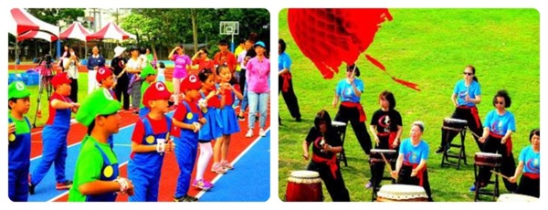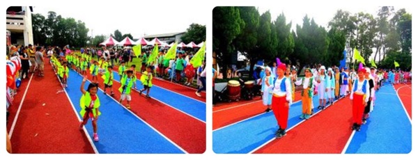 最有看頭的是運動員進場〜學生們以活潑、輕鬆、有趣的主題式妝扮進場,為校慶揭開精采序幕,班級導師也和學生們一起變裝打扮、勁歌熱舞,讓在場所有人目不暇給,掌聲與歡呼聲不斷,為大會增添熱鬧氣氛!上湖社區及三湖社區舞蹈表演、學生直排輪、跆拳道、扯鈴社社團展演、個人及團體趣味活動、體育競賽…等緊接在後,中午的「校友回娘家茶會」,多屆校友齊開同學會,一同拾起童年回憶,重溫舊時情。