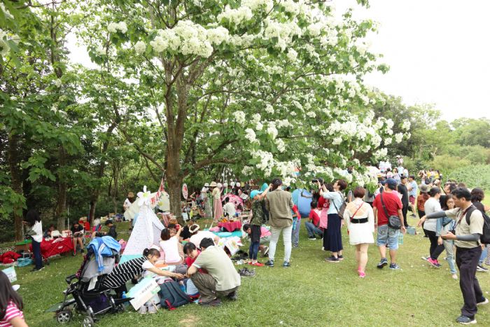 何明光局長表示,野餐是近年來最熱門的活動之一,今年桐花野餐派對開放80組名額,於4月19日開放報名即迅速額滿,展現活動的超高人氣!除了野餐佈置比賽,現場亦規劃手作彩繪桐花DIY課程、綠地泡泡秀、經典桐花印象拍貼機等互動體驗活動,及一系列精彩豐富的客家音樂及藝文展演,吸引更多年輕族群及親子家庭參加。