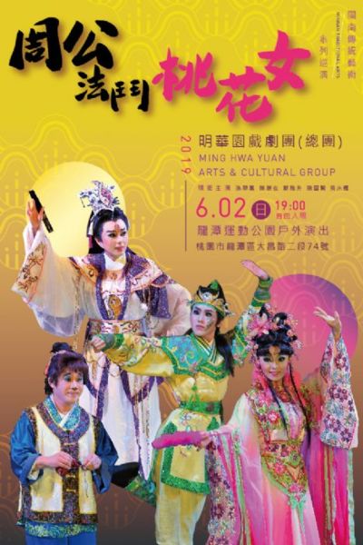 「明華園戲劇團總團」將於今(108)年6月2日(日)下午7時於龍潭區運動公園,進行戶外公演《周公法鬥桃花女》,為桃園市民帶來一場雅俗共賞的藝術饗宴。