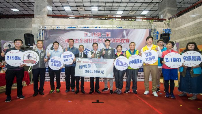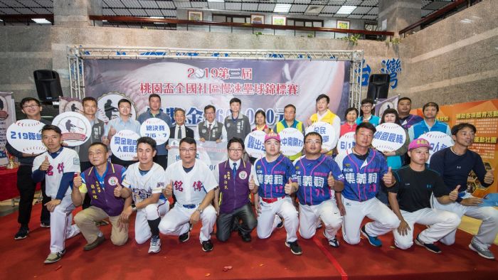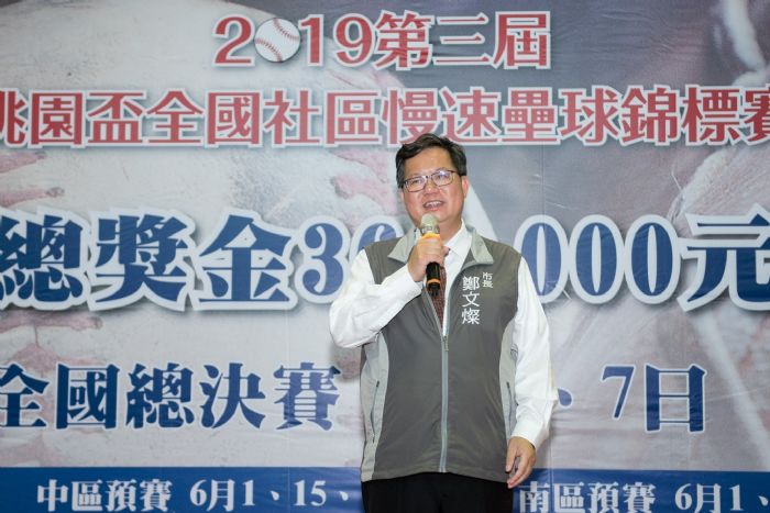 桃園市長鄭文燦(28)日下午於市府體育局,出席「2019第三屆桃園盃全國社區慢速壘球錦標賽記者會」,鄭市長表示,桃園盃全國社區慢速壘球錦標賽舉辦邁入第三年,已成為國內慢速壘球界的重要盛事,今(108)年各縣市報名相當踴躍,公開組36隊、社會組183隊,共計219隊報名,將近4,400人參與,除了爭奪團體競賽榮譽外,今年也首度增加個人打擊獎、美技獎及全壘打獎,同時頒發高額獎金,相信將大幅提升比賽的樂趣及可看度。