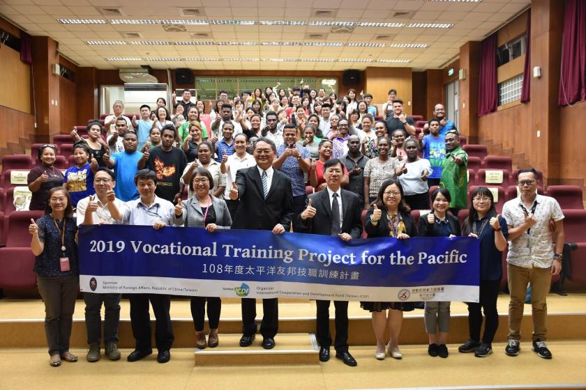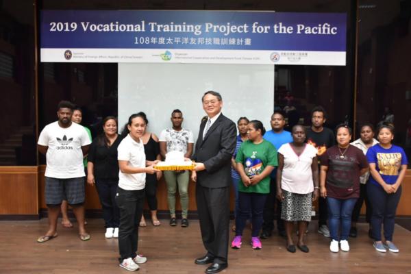 為協助吐瓦魯、吉里巴斯、馬紹爾群島、諾魯、帛琉及索羅門群島等太平洋友邦國家青年培養專業技能,藉此提升友邦青年的就業力,31日下午在勞動部勞動力發展署桃竹苗分署國際會議廳舉行開訓典禮,32位外籍學員齊聚一堂,由桃竹苗分署長賴家仁及合作單位國際合作發展基金會蔡祥吾處長,共同致贈餐飲工作服及工作帽給外籍學員,期勉學員以「敬業」及「專業」的態度學習技能,回國後也能展現所學,提升觀光產業技能水準。