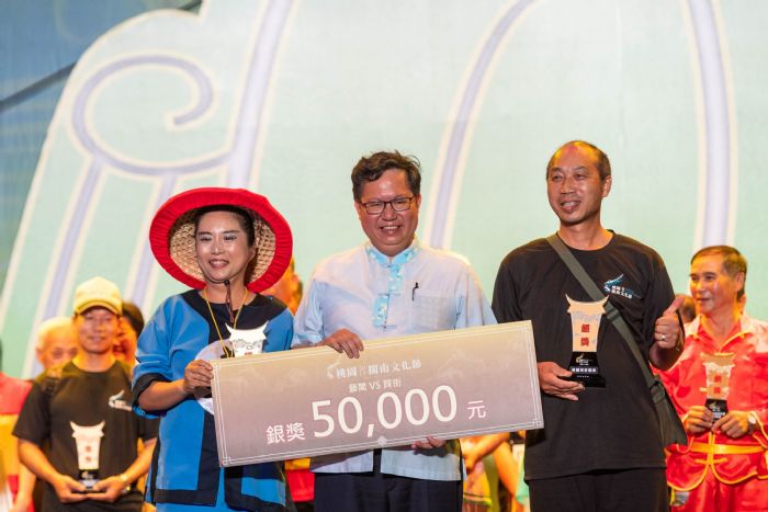 鄭市長頒發藝閣踩街競賽獲獎名單:金獎-中壢慈惠堂;銀獎-桃園市安平鎮庄文化協會、桃園海客協會;銅獎-桃園市新屋後湖居民協會、桃園市舞動桃運動推展協會、桃園市瑞龍傳藝文化推廣協會;今日包括市議員黃家齊、前立法委員邱垂貞、市府文化局長莊秀美均一同出席活動。