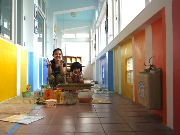 35歲,家住蘆竹的王惠苹,從小就喜歡畫畫,覺得繪畫所能帶給她的成就感遠比讀書來的高,大學原本想走工藝設計但沒考上,退而求其次選擇師院就讀,念了之後,才發現自己喜愛的是創作,也才明白「老師」不是自己想走的路!畢業後,一開始找不到工作,只能做些手作品,再拿到創意市集賣,直到參加企業基金會所舉辦的藝術下鄉活動才開始接學校牆面彩繪及裝置展覽等工作,從第一間學校開始畫起,其他學校看到惠苹的作品,覺得效果不錯,也慢慢找上她,有時候還會帶著小朋友一起創作,工作中充滿歡笑,完成的作品還能重新讓環境與空間活化,讓王惠苹從不覺得苦,反而覺得自己是一個散播歡樂散播愛的使者。