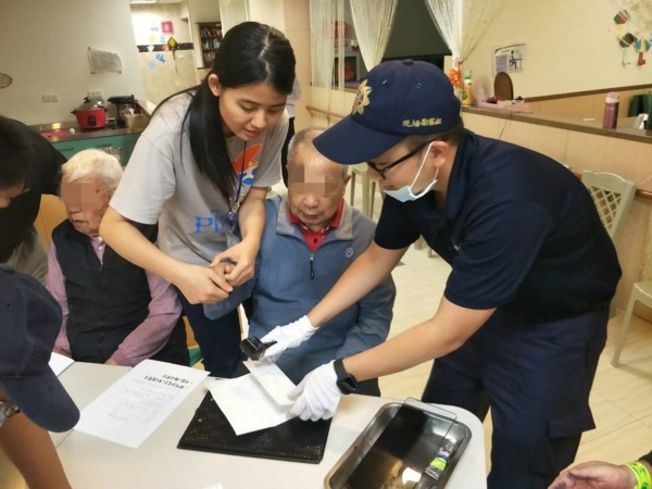 捺印指紋建檔服務,為桃警首次主動與照護機構合作,受理團體申請,各社福團體、社團報名累計十人以上,即可向各所轄分局申請派員至機構服務。