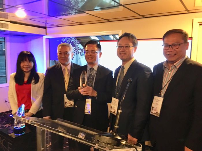 ICF於今日下午公布「2019全球年度智慧城市」首獎,由桃園市政府邱俊銘副秘書長代表領取,並與其他市府團隊成員以及ICF創辦人共同合影。