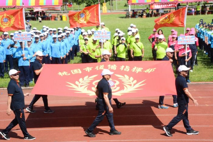 桃園升格後,市府積極與後備體系合作,邀請其參與救災或地方重大活動,讓後備體系在平時也能成為社會的骨幹。今日運動會舉辦包括大隊接力等各項競賽,讓後備弟兄齊聚一堂,期勉大家能發揮運動精神,展現團隊精神及活力。
