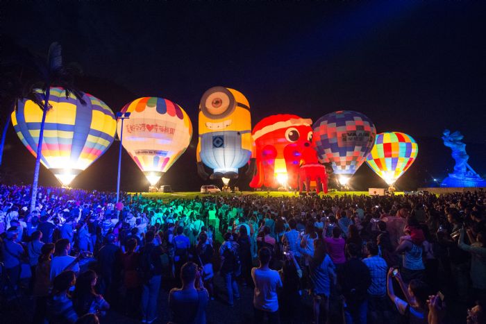 桃園市長鄭文燦(15)日晚間前往大溪區石門水庫南苑生態公園,出席「2019桃園石門水庫熱氣球嘉年華-夜間光雕噴火秀」。鄭市長表示,桃園石門水庫熱氣球嘉年華已邁入第四屆,是北台灣最大的熱氣球節慶,今(108)年以親子嘉年華為主題,邀請到超人氣電影主角「小小兵」造型熱氣球,以及來自日本可愛逗趣的章魚造型熱氣球在桃園亮相,將自今日起到6月23日,一連9天在石門水庫舉辦,歡迎市民親子共遊,一同體驗桃園的幸福經濟學。