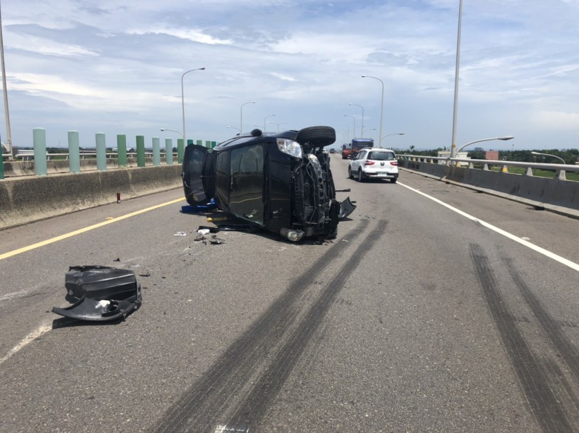 桃園市觀音區台61線西向5公里處,18日上午10時20分許,發生一起自小客車爆胎翻車事故,所幸當時車流不多,未發生追撞,僅有該車上乘客手腳擦傷、駕駛平安無事,算是不幸中的大幸。