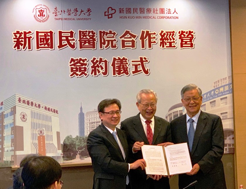 桃園市中壢區五十餘年老字號的新國民醫院,18日舉行與台北醫學大學簽訂合作經營之簽約儀式,新國民醫院由吳運東院長、吳運豐董事長、吳志揚立委等人代表與台北醫學大學張文昌董事長、林建煌校長,共同簽署合約。
