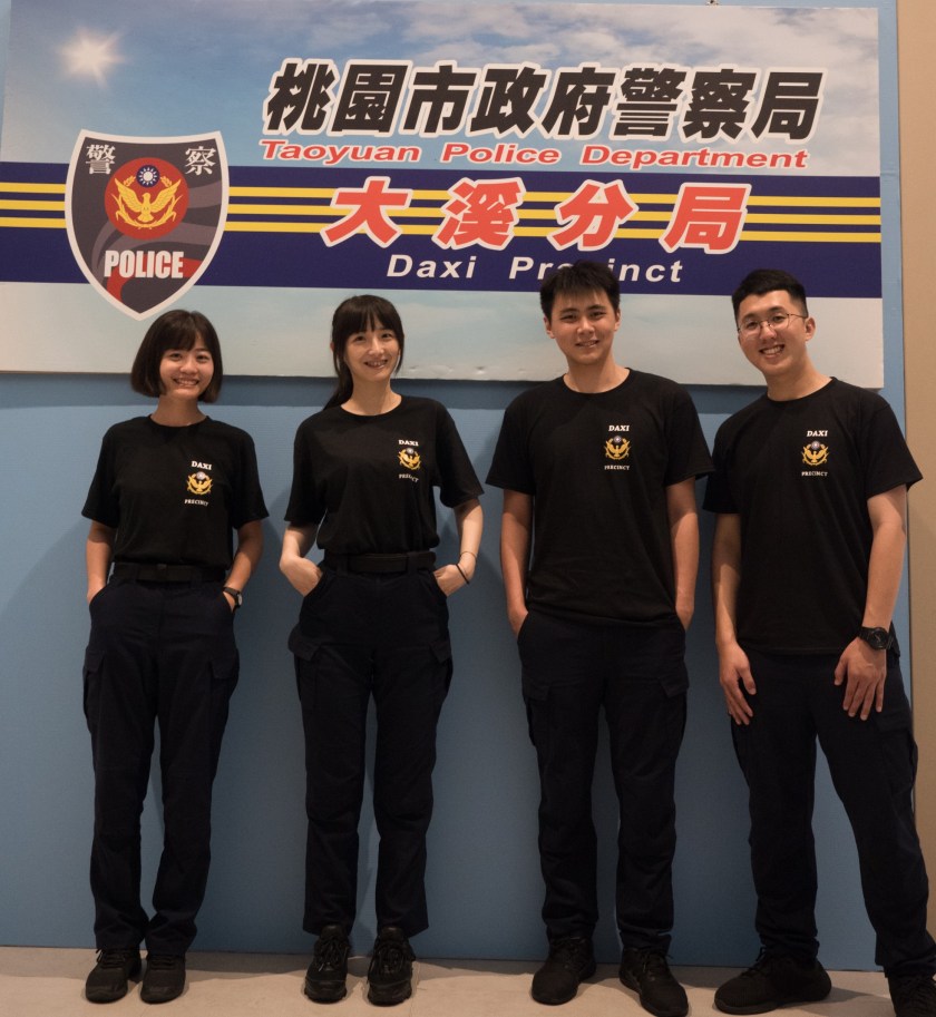 同時我們大溪分局也自製了屬於自己的T-shirt讓同仁勤餘時著用,上衣背面印製「D P P D」簡潔有力的4個英文字母也代表著桃園市政府警察局大溪分局(Daxi Precinct,Taoyuan Police Department)。