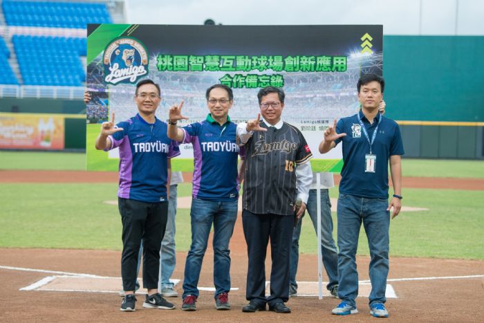 桃園市長鄭文燦22日下午前往桃園國際棒球場,出席「桃園智慧互動球場創新合作備忘錄簽訂儀式」,鄭市長表示,市府與國際大廠思科、岱凱攜手合作,將桃園國際棒球場升級為國內首座智慧互動球場,球迷只要透過手機APP,就能進行智慧點餐、智慧購票等,並提供許多互動功能,結合美日技術能力,帶給球迷數位化、智慧化、科技化的全新觀賽體驗。