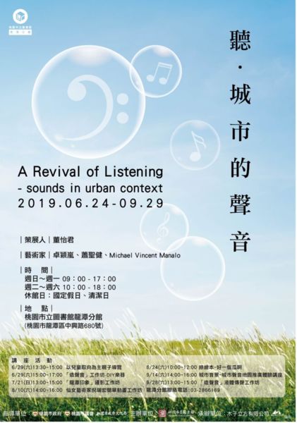 桃園市立圖書館配合即將到來的暑假,特別於龍潭分館策劃「聽‧城市的聲音 A Revival of Listening – sounds in urban context」特展,展出3位國際藝術家的多媒體藝術創作,包含影像、情境、互動藝術、聲音雕塑等媒材,主題圍繞「自然環境」、「工業文明及現代都會」、「童年」與藝術家所專注的「知覺」與「科技」的共融性,讓民眾在展覽現場感到耳目一新的情境感受。活動自即日起至9/29於桃園市立圖書館龍潭分館及其戶外空間一同展出,除了靜態展覽活動外還結合工作坊活動,提供對聲音藝術有興趣的民眾一起體驗動手做的樂趣,歡迎闔家蒞臨。