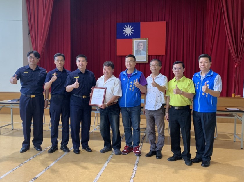 龍潭分局龍潭派出所警員林彥志日前擔服值班勤務,突然一名老翁拿著垃圾袋衝進派出所,緊張的說不出話,林員隨即倒杯水老翁止渴並安撫老翁緊張情緒。