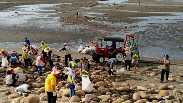 針對現場殘留無法以大型機具清除的廢塑膠碎片等雜物,海管處於6月29、30日的例假日,再次號召350位海岸巡護志工及民眾來淨灘,清出約2400多公斤垃圾及46公斤資源物。