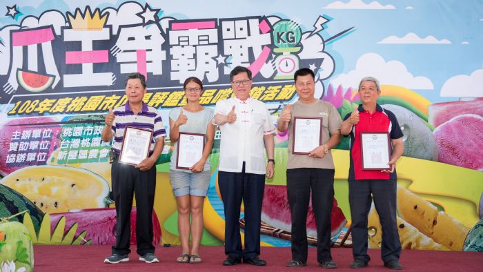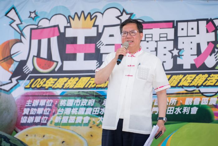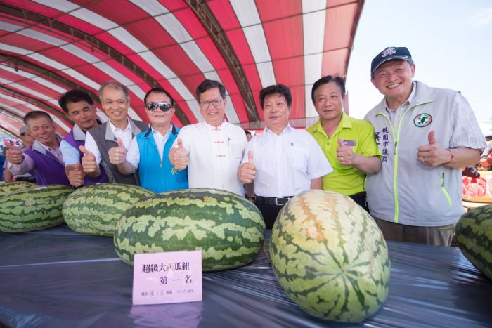 桃園市長鄭文燦30日上午前往觀音區金華路與新華路一段交叉口,出席「2019桃園蓮花季—西瓜評鑑促銷瓜王爭霸戰活動」時表示,「2019桃園蓮花季」29日起至8月25日於觀音區蓮花園休閒農業區盛大登場,活動時間長約2個月,週週舉辦精彩的系列活動。大園區、新屋區及觀音區多屬排水良好的沙質土地,成為桃園西瓜盛產地,種植的西瓜不僅水分多、甜度高,屬於高品質西瓜,因此今日特別於蓮花季主會場辦理「西瓜評鑑促銷瓜王爭霸戰活動」,共有大西瓜組40組、小西瓜組55組報名競賽,本次還特別增加超級大西瓜組,由羅文宗種植的62.08台斤大西瓜獲得第一名,其他參賽西瓜也於頒獎後分切分享給在場遊客品嚐,歡迎市民朋友和各大賣場多加選購、選用桃園優質西瓜。