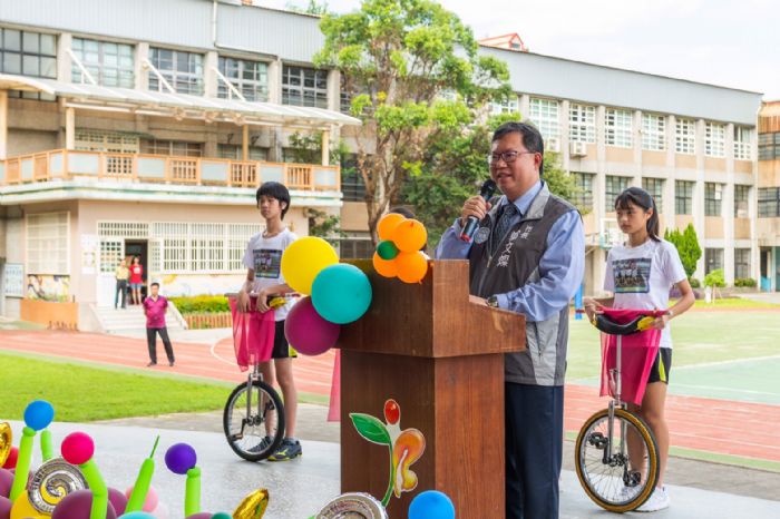 桃園市長鄭文燦30日上午前往桃園區中埔國小樂學樓,出席「桃園市108年度兒童專注力與情緒管理訓練獨輪車親子營開訓典禮」時表示,獨輪車為桃園特色運動之一,曾在106年教育部體育署舉辦的「地方特色運動」票選活動中獲得第1名,獨輪車運動具有平衡身心、紓解壓力、培養專注力和管控情緒等多項優點,因此從青少年積極推廣發展到身心障礙學生,期盼透過獨輪車親子營活動,讓身心障礙或有情緒困擾的學生,在教練和助教從旁指導及協助下,第一次接觸獨輪車就能快速上手,提升專注力、增進人際互動和親子關係,進而順利克服情緒障礙。