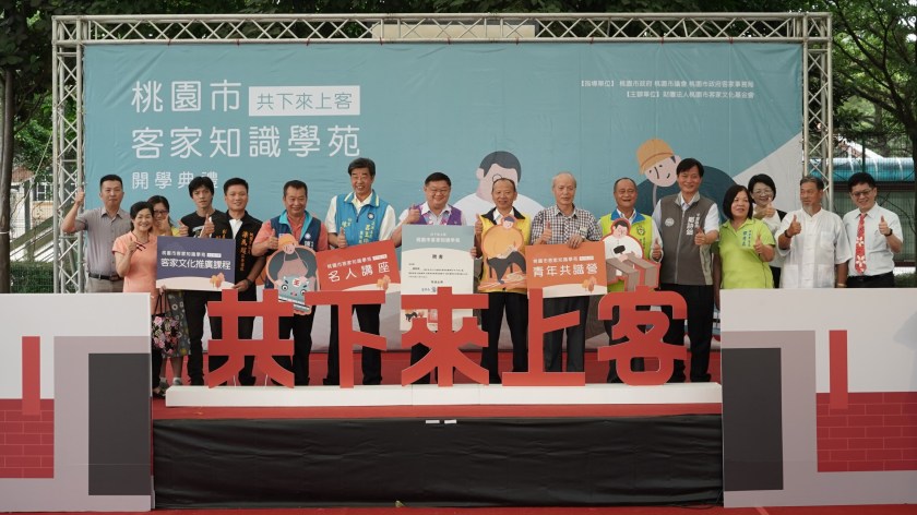 桃園市政府客家事務局與財團法人桃園市客家文化基金會(4)日共同舉辦「2019桃園市客家知識學苑」開學典禮記者會,邀請客家舞獅課程的講師劉文珍率同學生帶來精彩的舞獅表演,並邀貴賓一同上臺將學校大門開啟,象徵大家「共下來上客」,同時也宣布「客家文化推廣課程」、「名人講座」、「青年共識營」等3大系列課程正式開課!