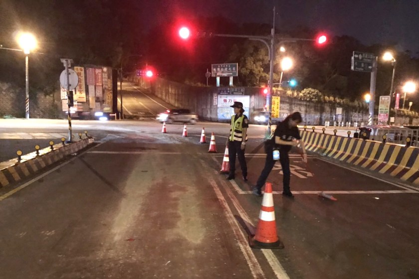 楊梅分局草湳派出所警員程信智與張雲淑,3日於20-22巡邏時接獲通報前往梅獅路與幼獅路處理交通事故,到場發現因路上散落一整排砂石,導致2輛機車及2人受傷。因梅獅路及幼獅路口是交通要道,因此處理員警擔心,若有機車騎士行經彎道處,可能會再次發生滑倒的車禍事故。