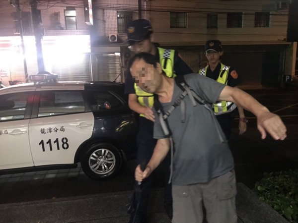 龍潭分局石門派出所副所長薛德祥、警員王耀民及廖佩祺等3員,於3日接獲協尋通報後,擔心年邁老翁豪雨後的夜間失蹤,如不趕緊找尋到,恐易生其他危險,當在搜尋過程中,行經龍潭區龍源路段時,突然發現老翁驚慌的蹲坐在旁邊的草地上,可能是因為體力耗盡,雨水沾濕了衣褲,身體不停地顫抖,員警隨即脫下風雨衣外套給予保暖,再攙扶老翁到附近的住家前休息。