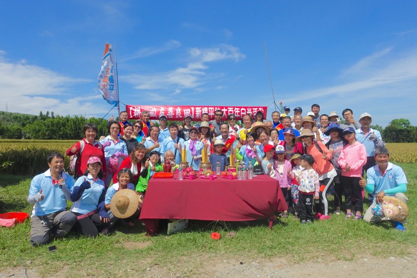 來自桃園各地區一百多位支持友善耕種的民眾,7月7日早上在楊梅區甡甡路底的清辰農場辦理「耕一畝友善農田」收割活動,活動開始以傳統的客家禮俗三獻禮活動來揭開序幕,在客家民俗發展協會周金水老師的帶領之下,宣讀表章、敬獻供品、感謝這一季的豐收,全體參與的穀東以無比虔誠的心,共同參與,感謝地祇龍神的護佑這一季的豐收。