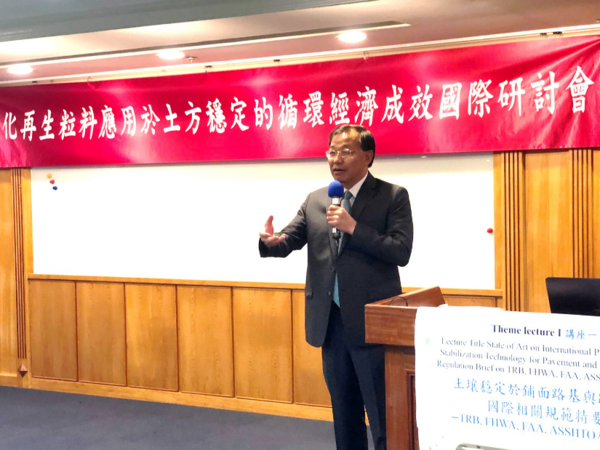 本次國際研討會邀請密蘇里科技大學 Thomas M. Petry教授(美國土木工程榮譽學會國務秘書及美國交通研究委員會(TRB)之化學穩定專業領域主席),解說土壤穩定在國際不同規範間的差異;接下來由桃園市政府環境保護局及工務局分享桃園市焚化再生粒料品質管控機制及應用成果;其後由中原大學張達德教授講解關於焚化再生粒料穩定土石方相關機制、試辦成果及施工步驟等,將新工法之執行方式分享與各界,希望能透過本次國際研討會與各工程主管機關、顧問公司、施工廠商及工程先進分享討論,獲得寶貴的意見再精進。