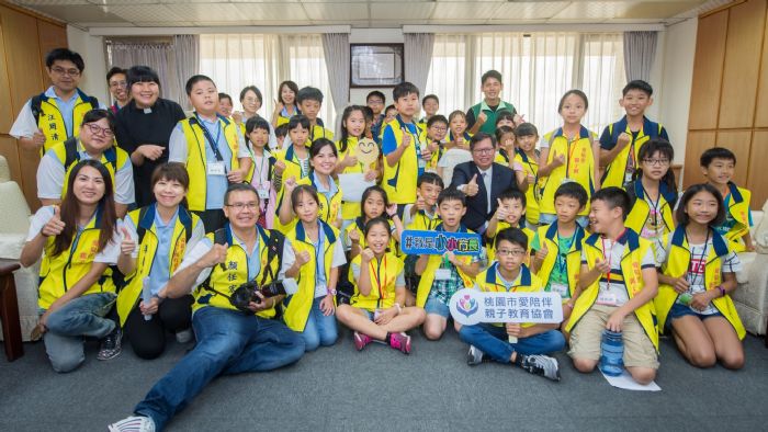 桃園市長鄭文燦(19)日出席「第二屆小小市長體驗營活動」,本營隊係由台灣基督長老教會龍岡教會與桃園市愛陪伴親子教育協會共同主辦,今(108)年已邁入第二屆,共計有30個家庭的學童及家長共同參與。活動由學童透過模擬市長的方式,瞭解市長平日的工作內容與市府運作模式。